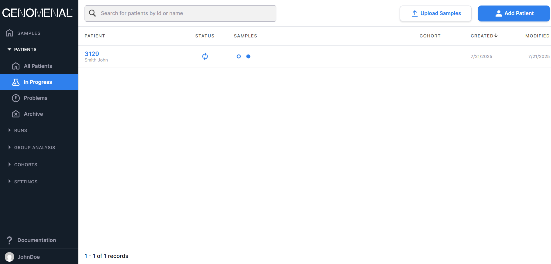 - โIn Progressโ - contains those patients whose data is being currently processed: